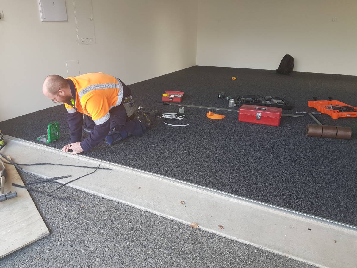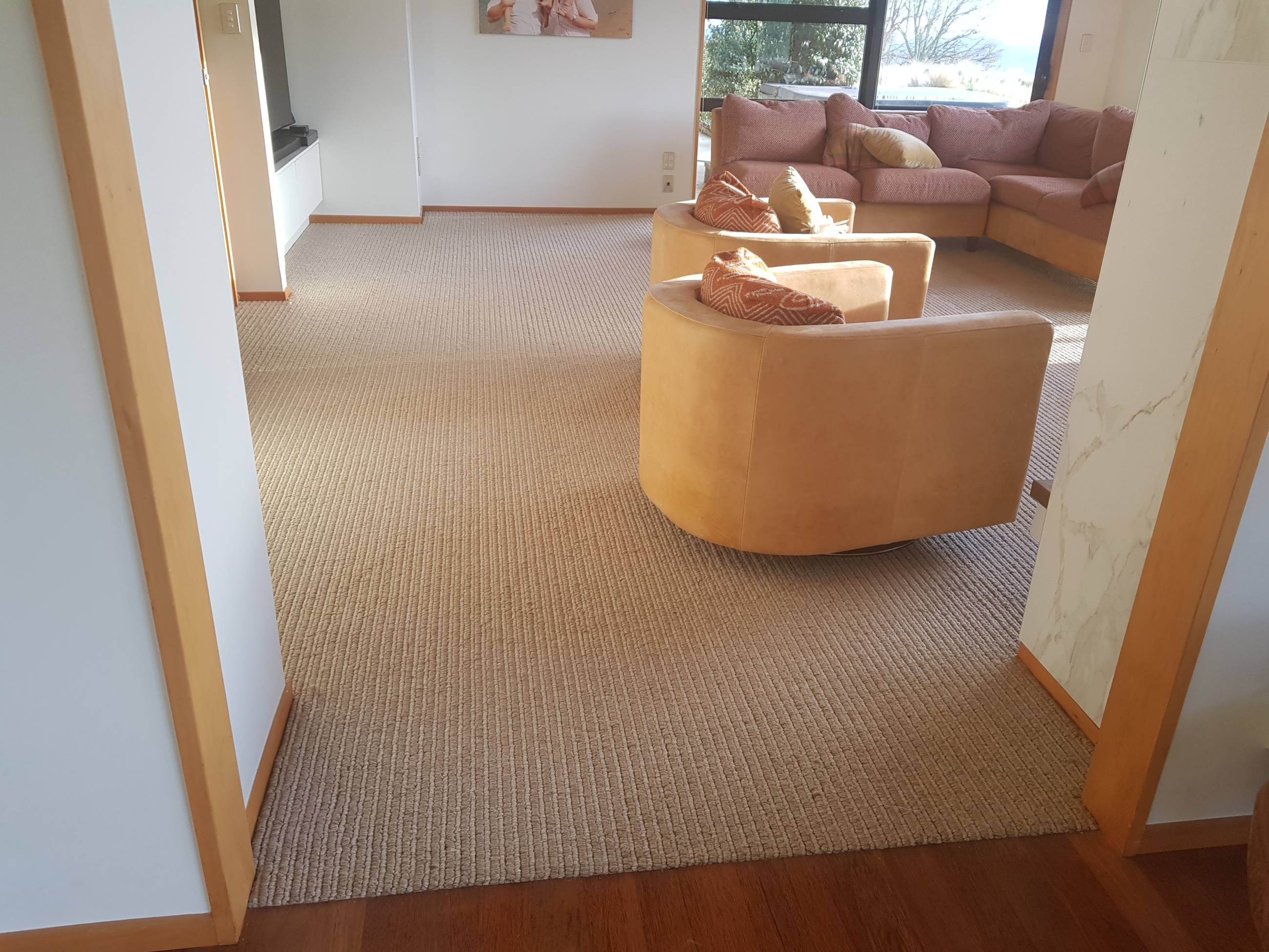 Garage Carpet with threshold bar.